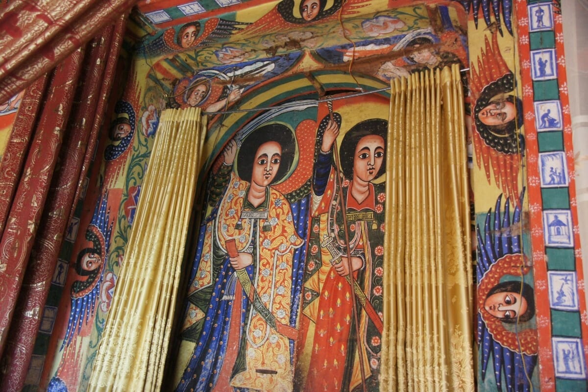 Am frühen Morgen Transfer zum Flughafen für ihren Linienflug mit Ethiopian Airlines nach Bahirdar. Im Anschluss an ein leichtes Frühstück in einem landestypischen Café mit frischen Fruchtsäften, Fahrt zu den bezaubernden Fällen des Blauen Nil, die in Äthiopien “Tissisat” heißen, was so viel wie “dampfendes Wasser” bedeutet (35 km pro Strecke). Nach einem etwa 30-minütigen Spaziergang gelangt man zum nahe gelegenen Aussichtspunkt mit wunderbarem Blick auf die Nilfälle. Das Wasser fällt hier 45 m tief und legt fast 700 km zurück, bevor es sich im Sudan mit dem aus Uganda kommenden Weißen Nil zusammenschließt und von dort bis nach Ägypten fließt, – eigentlich – denn leider haben die Fälle einiges von ihrer Dramatik verloren, seit oberhalb der Fälle ein großes Kraftwerk gebaut wurde, das die Region mit Strom versorgt. Trotzdem ist ein Ausflug zu den Fällen immer noch ein lohnendes Erlebnis. Anschließend Fahrt nach Bahir Dar für Mittagessen und Zimmerbezug. Am Nachmittag geht es per Boot über den Tanasee zum Inselkloster Ura Kidane Mihret aus dem 14. Jahrhundert. Ein halbstündiger Spaziergang durch die Kaffeewälder der Insel führt sie zu der kreisrunden Kirche mit Kegeldach, die mit herrlichen Gemälden, Kreuzen und Kronen bestückt ist. Von innen und außen ist das Kloster mit farbenfrohen Fresken bemalt, welche Szenen aus der Geschichte der äthiopischen christlich-orthodoxen Kirche und aus der Bibel darstellen. Danach Rückfahrt in Ihre Unterkunft.