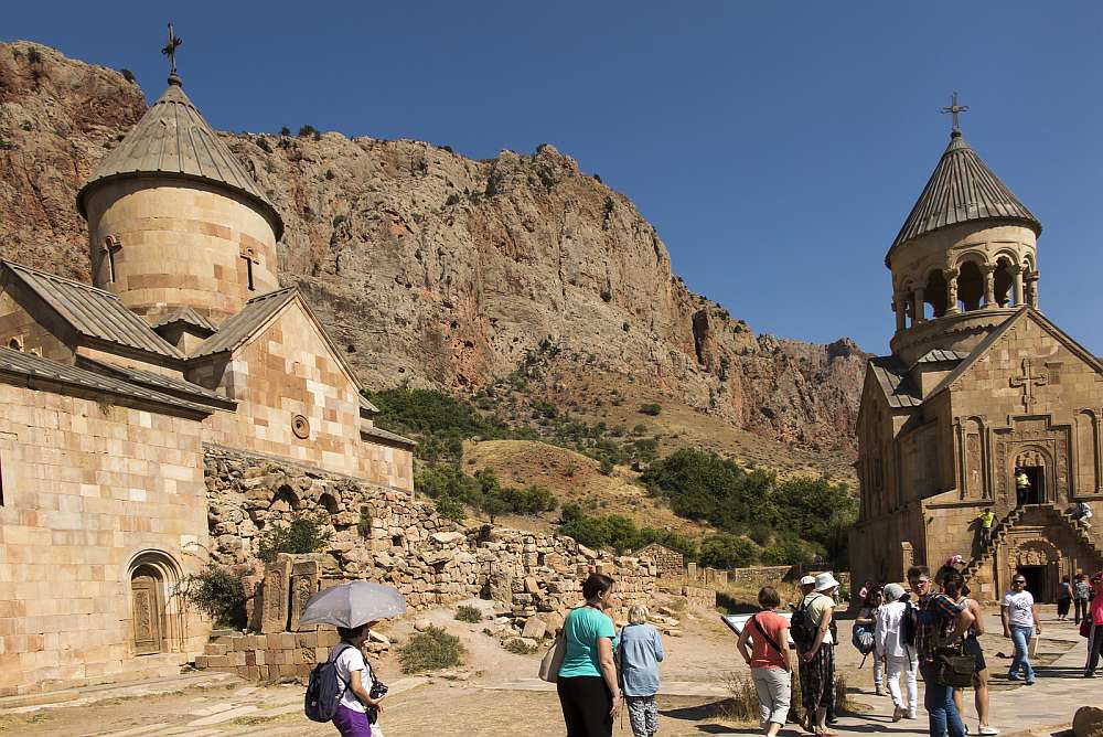Fahrt zu dem Kloster Chor Wirap. Es ist der Ort, wo der Hl. Gregor, von dem armenischen König für die Predigt des Christentums inhaftiert wurde. Er blieb in einem kleinen Kerker 13 Jahre lang ohne Nahrung. Das Kloster Chor Wirap wurde auf dem Kerker gebaut und Besucher können die dunkle Grube besichtigen. Es ist einer der heiligen Orte für die christliche Welt. Hier öffnet sich eine schöne Aussicht auf den biblischen Berg Ararat und seiner zwei weißen Gipfel. Weiterfahrt durch eine wunderschöne Schlucht zwischen roten Felsen zum Norawank Kloster (13-14 Jh.). Es gilt als eines der schönsten Klöster Armeniens. Besuch des Weinorts Areni – Weinverkostung. Areni zählt zu den Zentren der Weinproduktion in Armenien. Letzte archäologische Entdeckungen machten diesen Ort weltweit berühmt. Rückfahrt nach Eriwan.