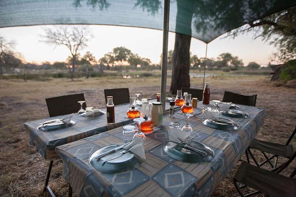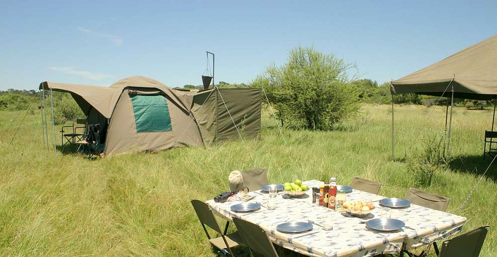 Die "Fully Serviced Safari" ist eine Safari bei der das Team von Bush Ways alle notwendigen Aufgaben im Camp übernimmt, um einen reibungslosen Ablauf der Safari zu gewährleisten. Die Zelte sind große (3mx3m) Canvas-Kuppelzelte mit Feldbetten und Bettzeug. Jedes Zelt hat eine eigene Buschtoilette und Dusche.