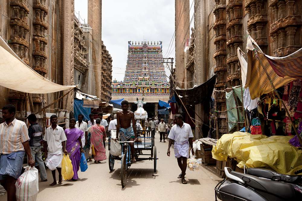 Nach dem Frühstück geht die Fahrt weiter Richtung Tanjore (Thanjavur). Unterwegs besuchen Sie den Tempel des tanzenden Shiva in Chidambaram. Der Legende zufolge soll hier der Gott Nataraja seinen kosmischen „Tanz der Glückseligkeit“ aufgeführt haben, der den Prozess von Schöpfung, Zerstörung und Wiedererschaffung des Universums symbolisiert. Der Nataraja Tempel Komplex ist ein Highlight der drawidischen Architektur, erschaffen von der Chola Dynastie. Im Anschluß besichtigen Sie den Airavatesvara Tempel, der innerhalb der Stadt Darasuram liegt. Danach geht es weiter nach Kumbakonam, einer Tempelstadt mit vier großen Tempeln. Die wichtigsten davon sind der Sarangapani, der Kumbeshwara und der Nageshwara. Gegen Nachmittag erreichen Sie Tanjore, bekannt als die “Reisschüssel” des Bundesstaates Tamil Nadu und für seinen Brihadishvara (UNESCO-Weltkulturerbe), der mit seiner außergewöhnlichen Tempelkuppel und den lebendigen Verzierungen als einer der absoluten Höhepunkte der Chola-Architektur gilt.