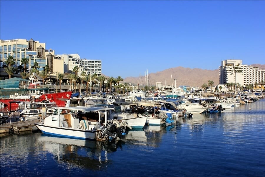 Genießen Sie das Rote Meer an diesem quirligen Badeort mit Blick nach Jordanien, Saudi Arabien und Ägypten.