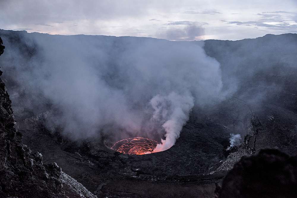 Bei Interesse startet der Tag mit einem Besuch des “Don Bosco Ngangi Center”. Das Kinderhaus beherbergt an die 3000 Straßen-,Soldaten-und Waisenkinder. Fahrt über die Rutshuru Straße entlang von Lavafeldern und Beginn des ca. 5-stündigen Aufstiegs zum Kraterrand des Nyiragongo. Unterwegs Picknicklunch. Ihr persönlicher Koch bereitet eine kräftige Mahlzeit zu. Abendessen und Übernachtung in kleinen Hütten am Kraterrand. Ein atemberaubender Blick auf das aktive Lavafeld erwartet Sie.